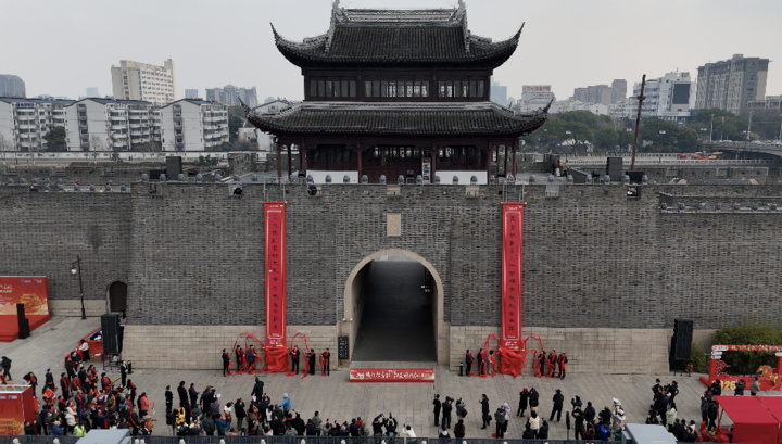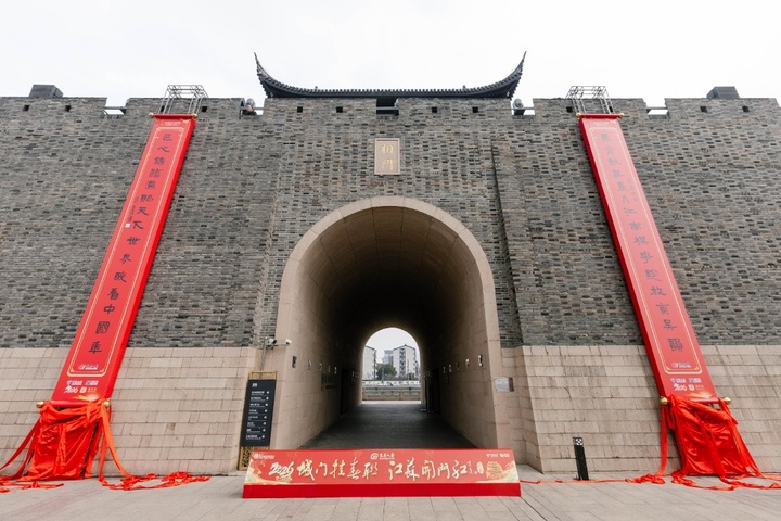 活动最后,嘉宾们同启红绸,巨幅楹联正式亮相。至此,阊门、胥门、盘门、平门、娄门、齐门、金门、蛇门连同相门,苏州九大城门的喜庆楹联全部揭开了神秘面纱。古老的城墙之上,崭新的红联与斑驳的砖石交相辉映、相得益彰。