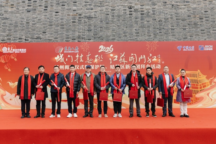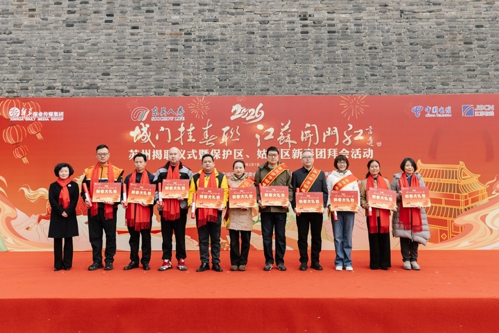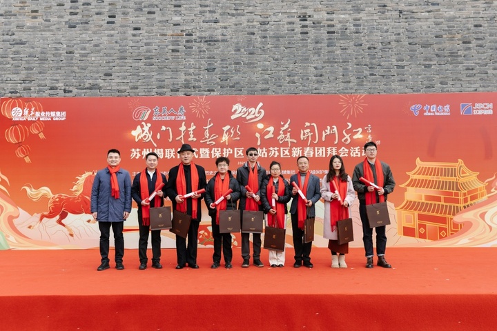 2026“城门挂春联 江苏开门红”苏州揭联仪式暨保护区、姑苏区新春团拜会活动由苏州市委宣传部、苏州国家历史文化名城保护区管委会、新华报业传媒集团、苏州名城保护集团主办,姑苏区委宣传部、新华日报社苏州分社、中国江苏网苏州分公司承办,东吴人寿、中国电信苏州分公司、江苏有线苏州分公司协办,用挂联迎春展现古城之美,传播文化自信。