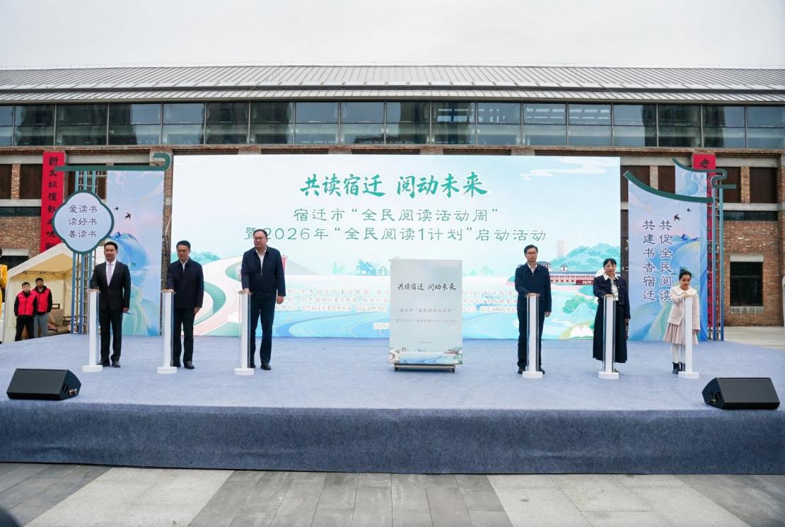 此外,活动还精心打造了多元融合的阅读实践场景,书香市集、主题展览、邮政明信片定制、非遗文创展示、书法印章体验等区域一应俱全,互动感、参与感十足,让广大市民在沉浸式动手实践中,真切感受阅读的独特魅力。活动尾声,与会领导共同上台,正式启动宿迁市“全民阅读活动周”暨2026年“全民阅读1计划”活动。