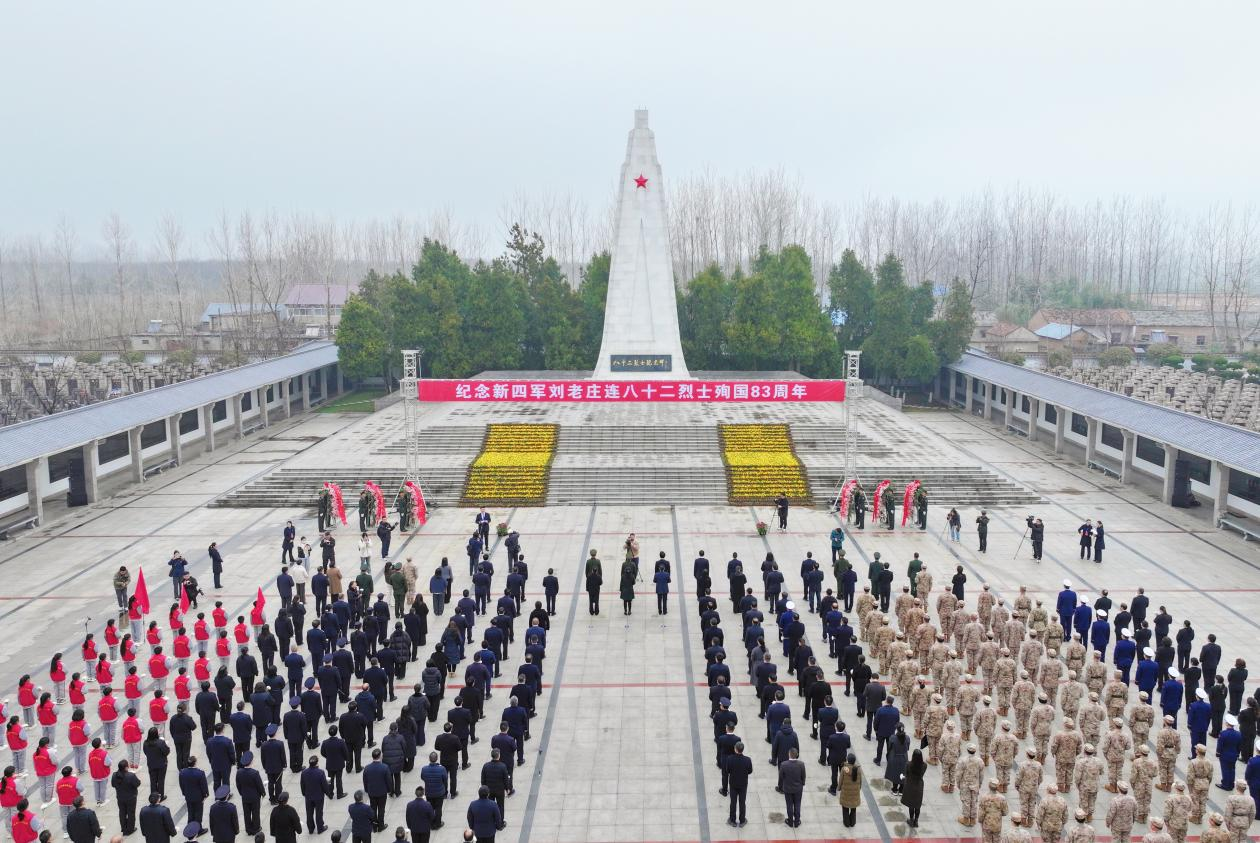 公祭仪式在新四军刘老庄连纪念园纪念碑广场举行。烈士陵园内,松柏苍翠、静穆庄严。各界代表手持鲜花,在烈士纪念碑前默然肃立。