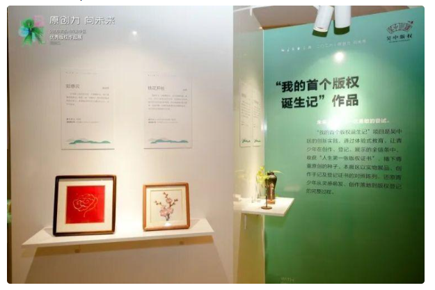 这也是吴中区第二年在优秀版权作品展中设置“我的首个版权诞生记”展区,有家长驻足良久、感慨万千:“孩子第一次以‘小原创作者’的身份出现在大众面前,这种尊重原创的体验,会影响他一生的价值观。”