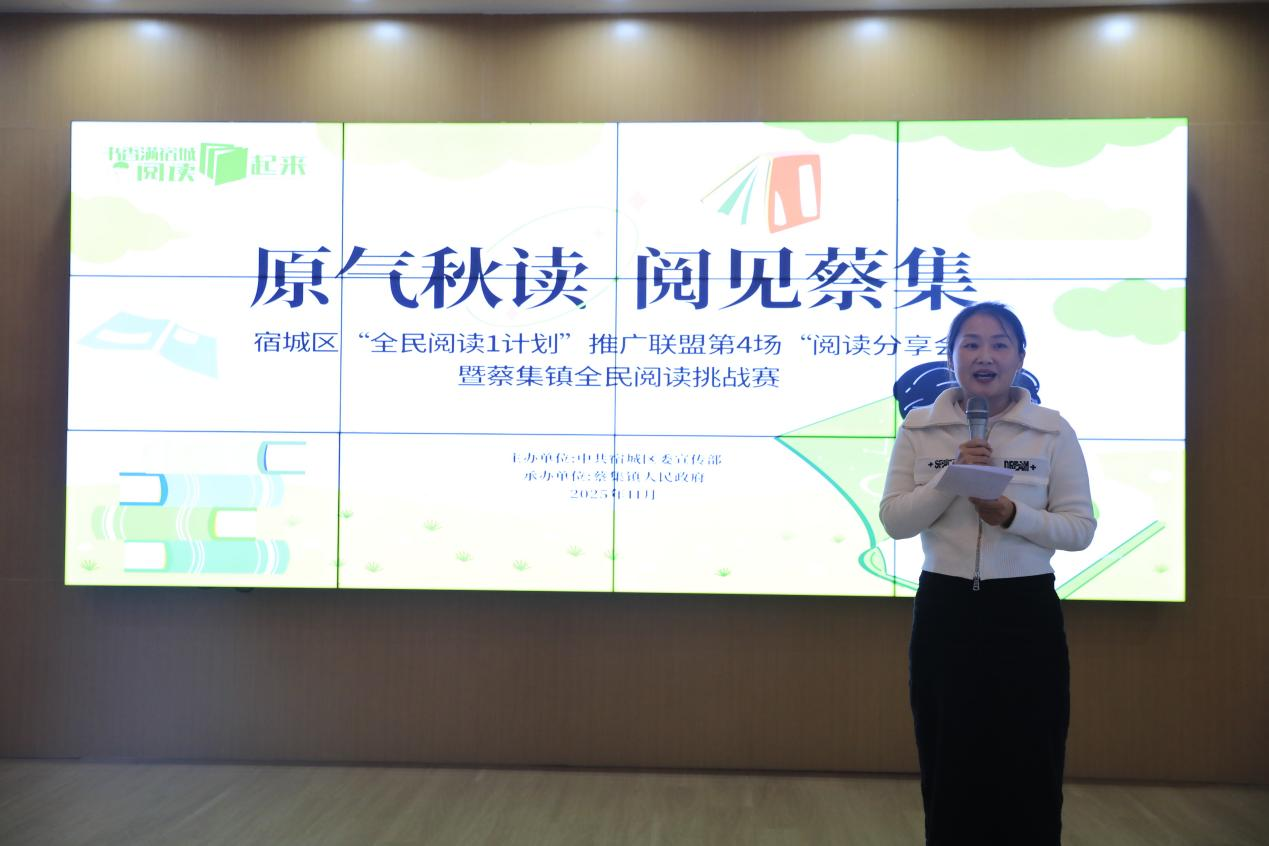 11月6日下午,宿迁市宿城区“全民阅读1计划”推广联盟第4场“阅读分享会”暨原气秋读季·蔡集镇阅读挑战赛在蔡集镇牛角社区举行。本次活动以“原气秋读 阅见蔡集”为主题,通过“以赛促读、以读传情”的方式,进一步增强全民阅读活动的吸引力和感染力,营造“书香满乡村”的浓厚氛围。
