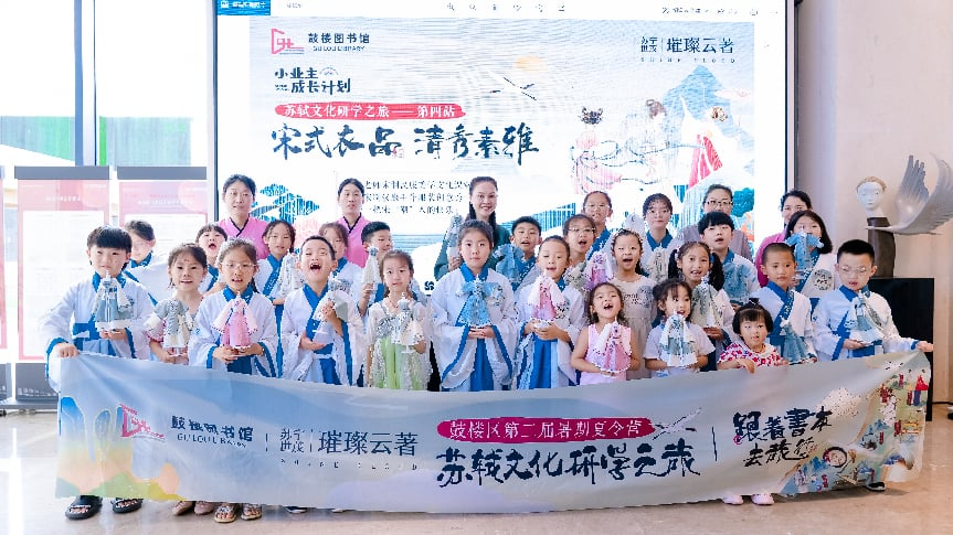黄楼公园内,扮演“苏轼”“苏辙”“秦观”“苏小妹”的演员们与孩子们现场互动,通过问答的形式,将黄楼、镇河铁牛、五省通衢、汴泗交汇的文化历史娓娓道来。苏轼抗洪保城事迹的讲述、铁牛与“镇水”的文化寓意,又或是汴水与泗水的相关诗词……深厚又充满趣味的历史令孩子们沉浸其中。 在文庙前,孩子们身着汉服,正衣冠、拜先师、朱砂启智,在庄严的入泮礼中感悟尊师重道的传统,感受汉文化的魅力。当书本上的文字变成真实可感的实践体验,对文化的敬意与热爱才能更深入人心。 鼓楼区“跟着书本去旅行”活动自2022年启动以来,已连续举办四届,累计服务读者超50万人次,被新华网、人民图片网、徐州日报等多家主流媒体累计报道20余次。“跟着书本去旅行”以经典阅读为原点,以本土文化为脉络,打造“行走的课堂”,形成了具有特色的“图书馆平台化运营”公共文化服务新模式。