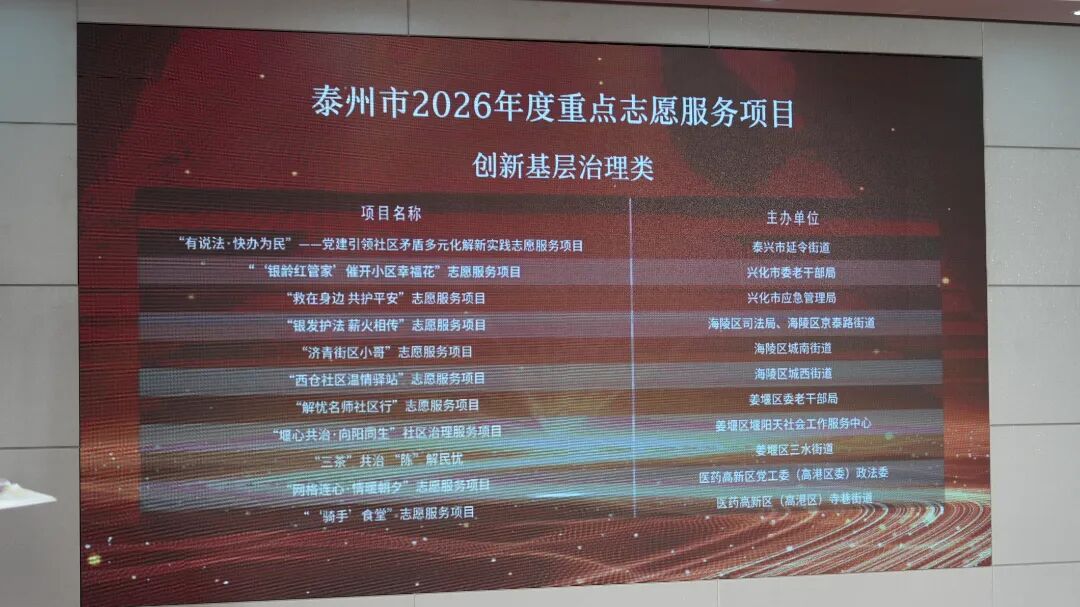 从社区邻里的暖心帮扶到专业领域的精准服务,从“一个人”的微光到“一群人”的星河,泰州正以志愿精神凝聚起服务群众、助力基层治理的强大合力。站在“十五五”开局新起点,泰州市将持续擦亮“祥泰有你 志愿有我”服务品牌,以志愿微光照亮高质量发展之路,奋力书写“强富美高”新泰州现代化建设的温暖篇章。