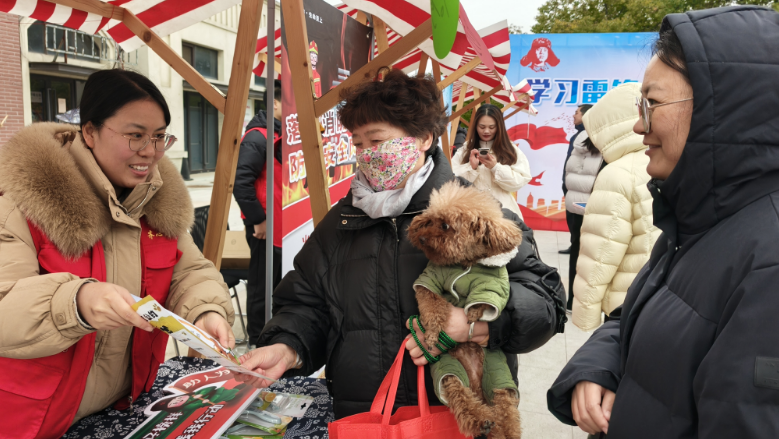 雷锋主题手工区里,孩子们巧手制作徽章、书签等手作,将红色信仰融入指尖,作品还会登上雷锋作品展示墙;移风易俗宣传区,党员志愿者和网格员耐心讲解知识、解读身边典型案例,不少居民主动签署文明承诺书;文明养犬宣导站,志愿者讲解规范要求,发放宣传册和拾便袋,并送上宠物小礼品。