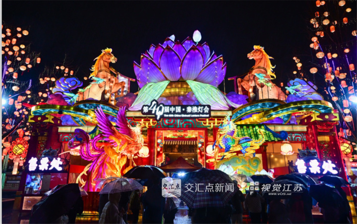 2026年3月1日,南京夫子庙景区华灯璀璨,众多游客雨中赏灯游玩,喜迎元宵佳节。管钰楠 摄 视觉江苏网供图