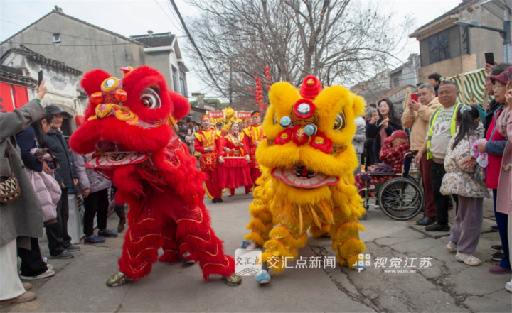 2026年2月28日,无锡市滨湖区雪浪街道南泉老街举办民俗巡游活动,祥龙起舞、非遗花灯、莲湘秧歌等表演轮番亮相,市民游客在沉浸式体验中感受传统民俗文化魅力。潘正光 摄 视觉江苏网供图