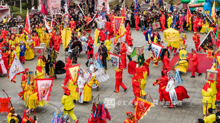2026年3月2日,南京高淳游子山景区举办“福地高淳 晒霉纳福”元宵祈福盛典,国家级非物质文化遗产——东坝大马灯作为重磅民俗节目参与巡游演出。徐福庚 摄 视觉江苏网供图