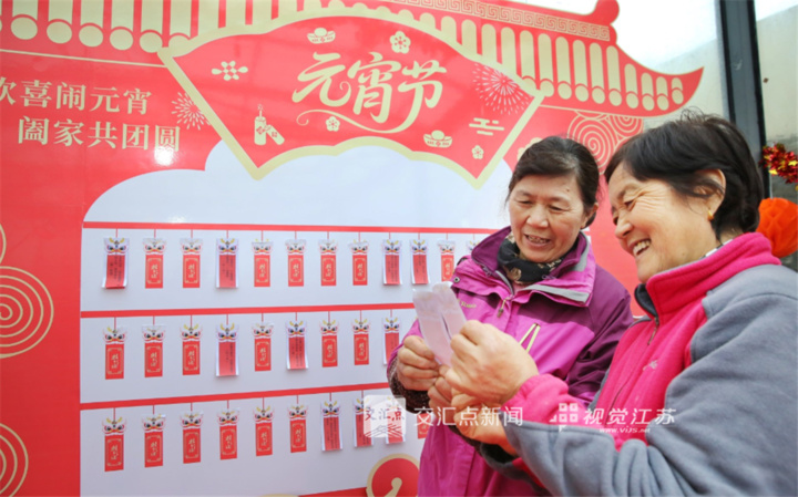 2026年2月28日,镇江丹阳市云阳街道在东城金街社区举行“明灯照廉心 灯谜传家风”元宵节猜灯谜活动,让社区居民感受传统节日的欢乐氛围。华元成 摄 视觉江苏网供图