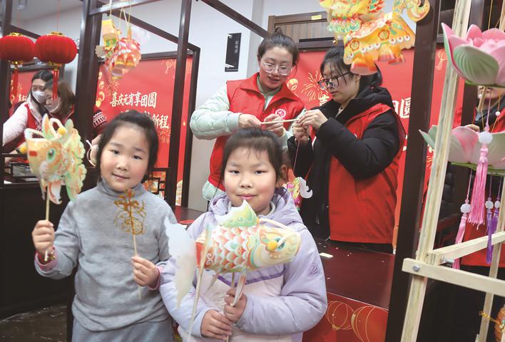 ▼小朋友开心展示小花灯。 钱宏斌 摄