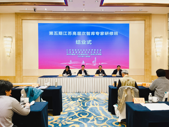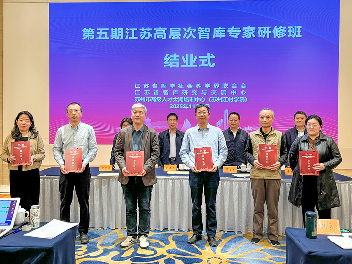 11月8日,由江苏省社科联主办,江苏省智库研究与交流中心、苏州市高级人才太湖培训中心(苏州江村学院)共同组织实施的第五期江苏高层次智库专家研修班圆满结业。研修班延续一贯的“高站位”“高层次”“高规格”“高标准”“高要求”的办班特色,紧扣“深入学习贯彻党的二十届四中全会精神、提高调查研究能力更好赋能中国式现代化”主题,10多位来自中国人民大学、浙江大学、南京大学和上海社科院、江苏省社科院等高校研究机构的智库专家应邀作专题授课。来自江苏省新型智库理事会成员单位,省重点高端智库、培育智库,省决策咨询研究基地及部分社会智库的80余位专家学者、职能部门负责人在为期6天的研修培训中,聆听了关于江村经济及田野调研实践的大师授课,走访了江南模式中的“灯塔企业”、体现长三角一体化发展和合之思的水乡客厅、实现乡村产业振兴的优秀示范案例,深度探讨了新型智库工作者“把论文写在大地上”的时代责任与担当。