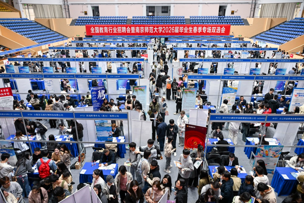 4月8日,南京师范大学仙林校区体育中心人头攒动,“扩容提质强服务 春季攻坚促就业”全国教育行业招聘会暨南师大2026届春季专场双选会火热启幕。300余家优质单位、1.2万个岗位横跨13省51城,中初教育、国企央企、上市公司同台揽才,AI智能匹配、简历诊断、直播带岗等数智服务全线铺开。