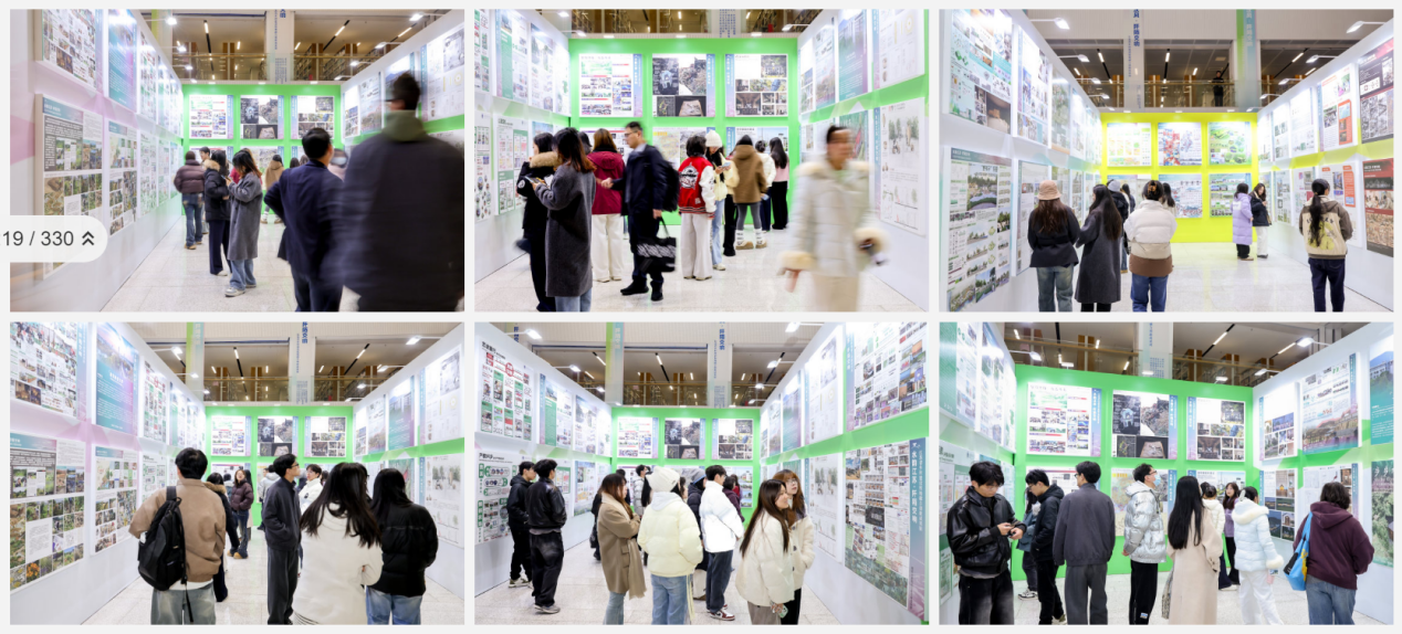 本次活动同步举办了江苏省乡村建设校地融合创新成果展,以“吴韵汉风,阡陌交响”为主题,通过“序曲·溯源”“主调·赋能”“和声·共生”“华彩·畅想”四大乐章,生动呈现了江苏乡村在文化传承、产业振兴、生态宜居、数字融合等方面的校地合作成果。展览以绿、红、黄、蓝四色呼应乡村四季,展现了江苏乡村建设的蓬勃脉动。