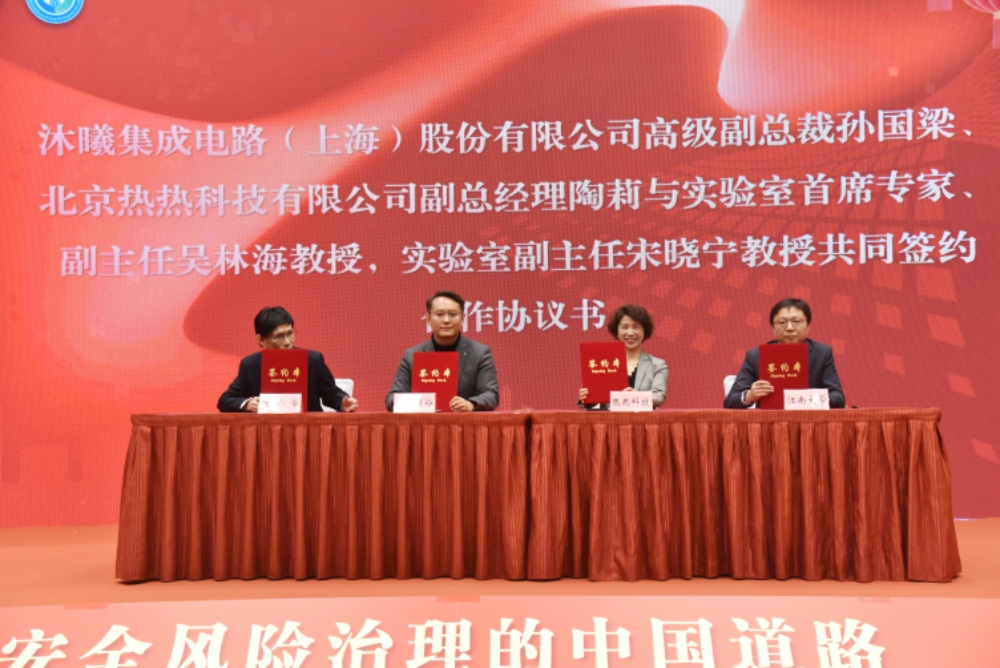 沐曦股份高级副总裁孙国梁、北京热热科技有限公司副总经理陶莉与实验室首席专家、副主任吴林海,实验室副主任宋晓宁共同签约合作协议书