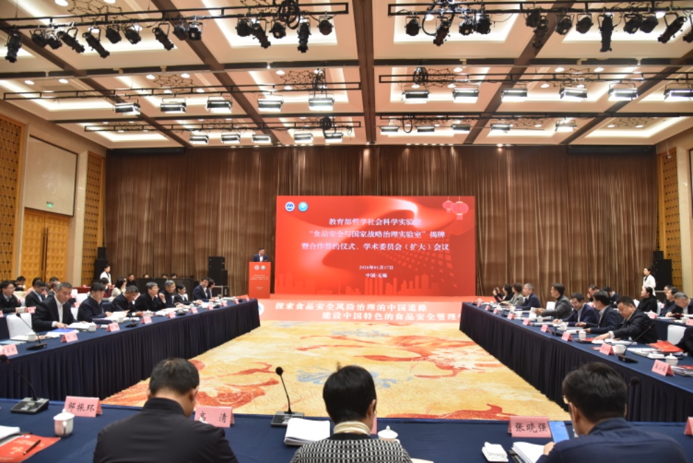 1月17日,教育部哲学社会科学实验室“食品安全与国家战略治理实验室”揭牌暨合作签约仪式、学术委员会(扩大)会议在无锡举行。百余位来自省市级相关部门、高校科研院所、龙头企业的参会代表齐聚一堂,共同见证这一食品安全治理领域国家级平台的正式启用,深度交流与探讨AI技术与食品安全治理深度融合的创新路径。
